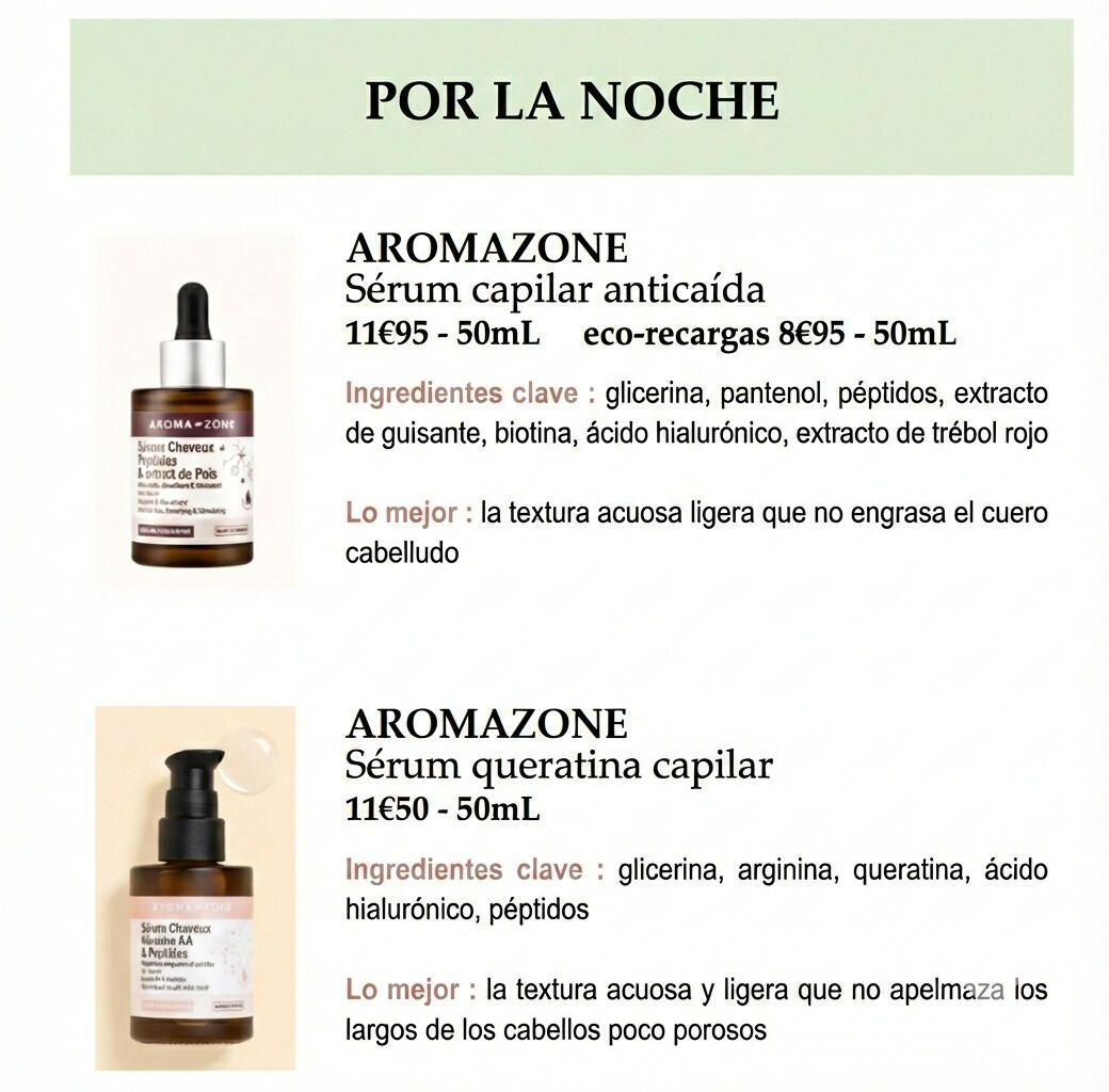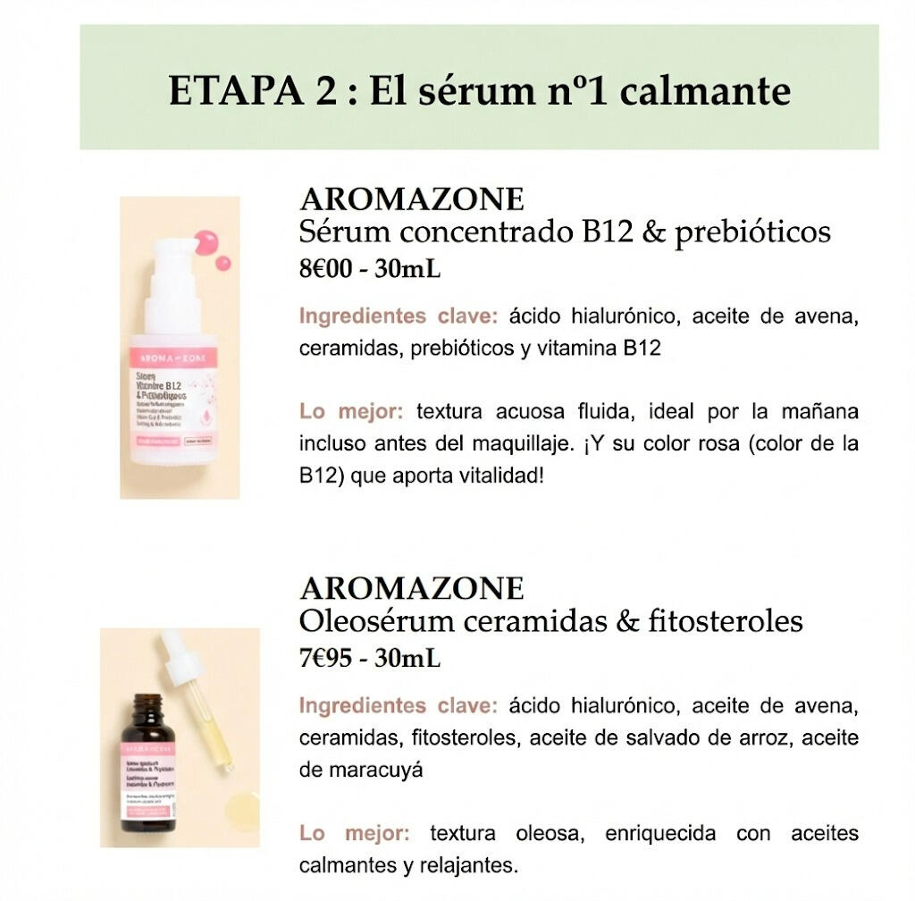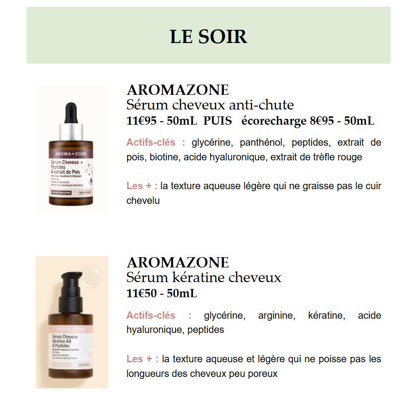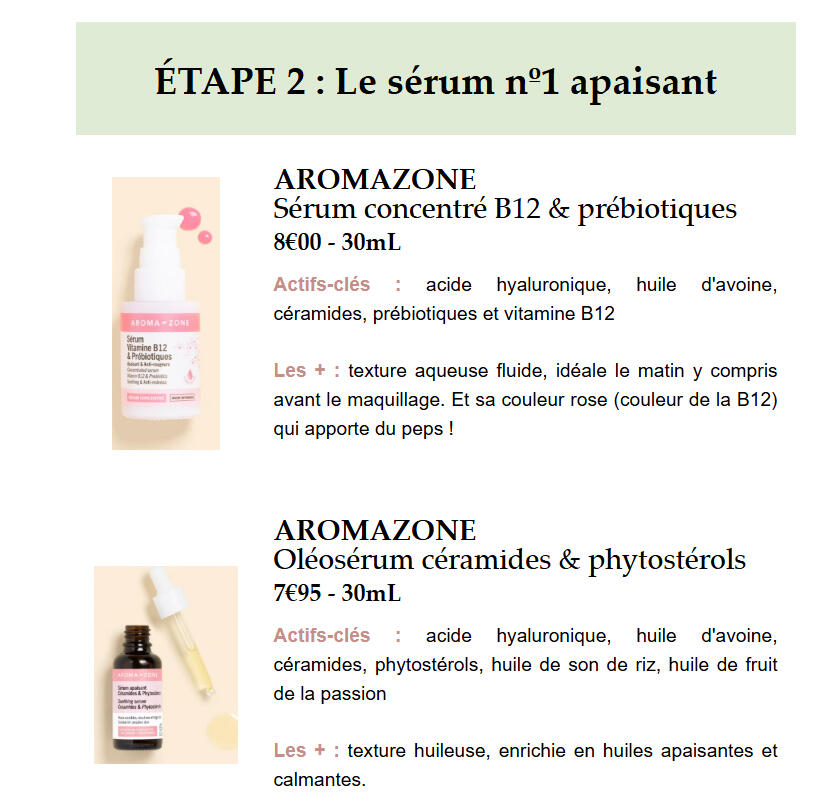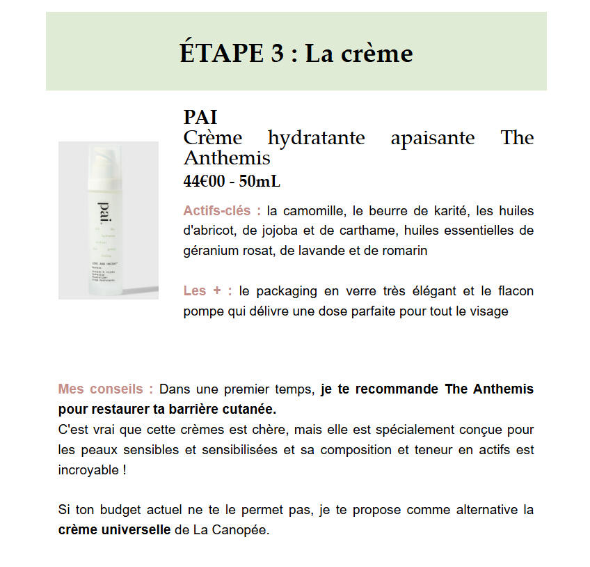 Si eliges la fórmula La Minimalista o La Esencial, te propondré 1 crema, 1 sérum, ! champú... Es 1 recomendación por tipo de producto.Si eliges la fórmula La Generosa o La Abundante, te propondré 3 cremas, 3 sérums, 3 champús... Son 3 recomendaciones por tipo de producto. Así, podrás elegir libremente entre estos 3 productos, según tus preferencias o lo que encuentras más fácilmente. Sin embargo, siempre añadiré consejos y las diferencias entre las 3 recomendaciones, además de mi opinión en función de tu situación.