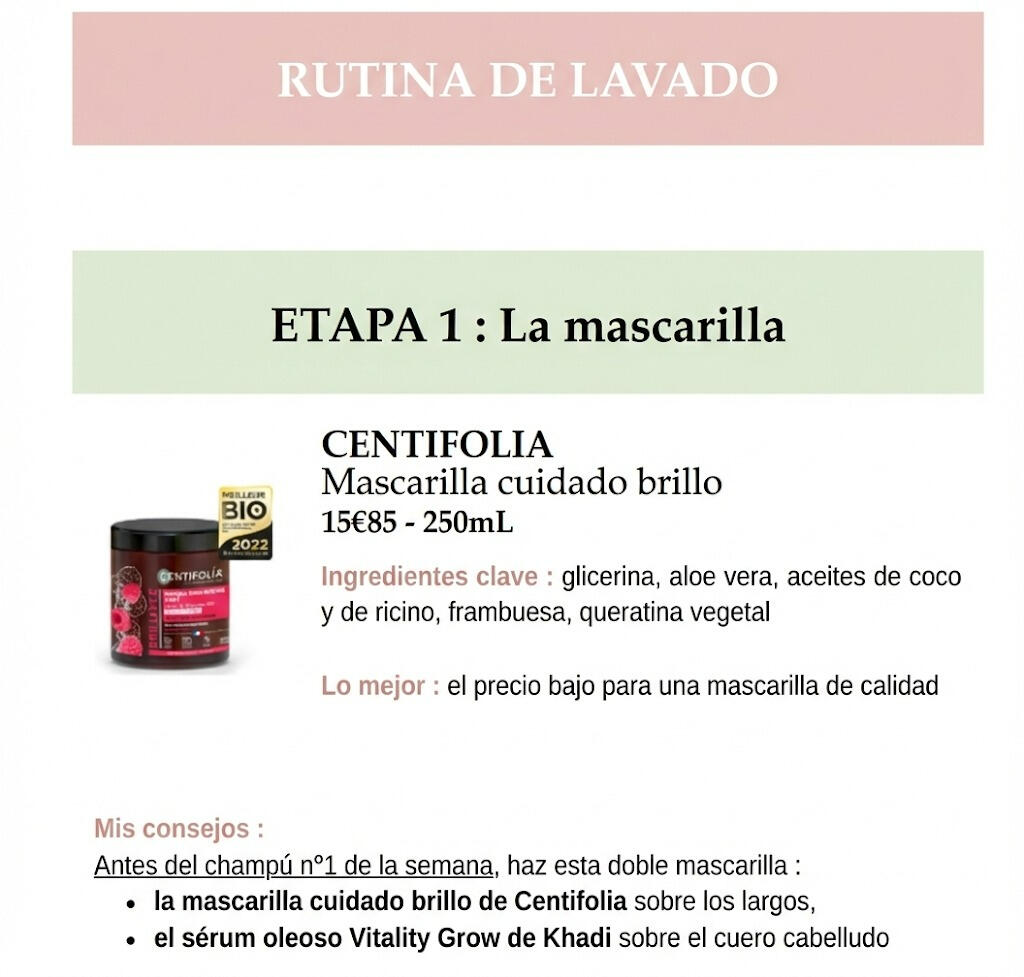 Aquí puedes ver un ejemplo de rutina personalizada CABELLO
