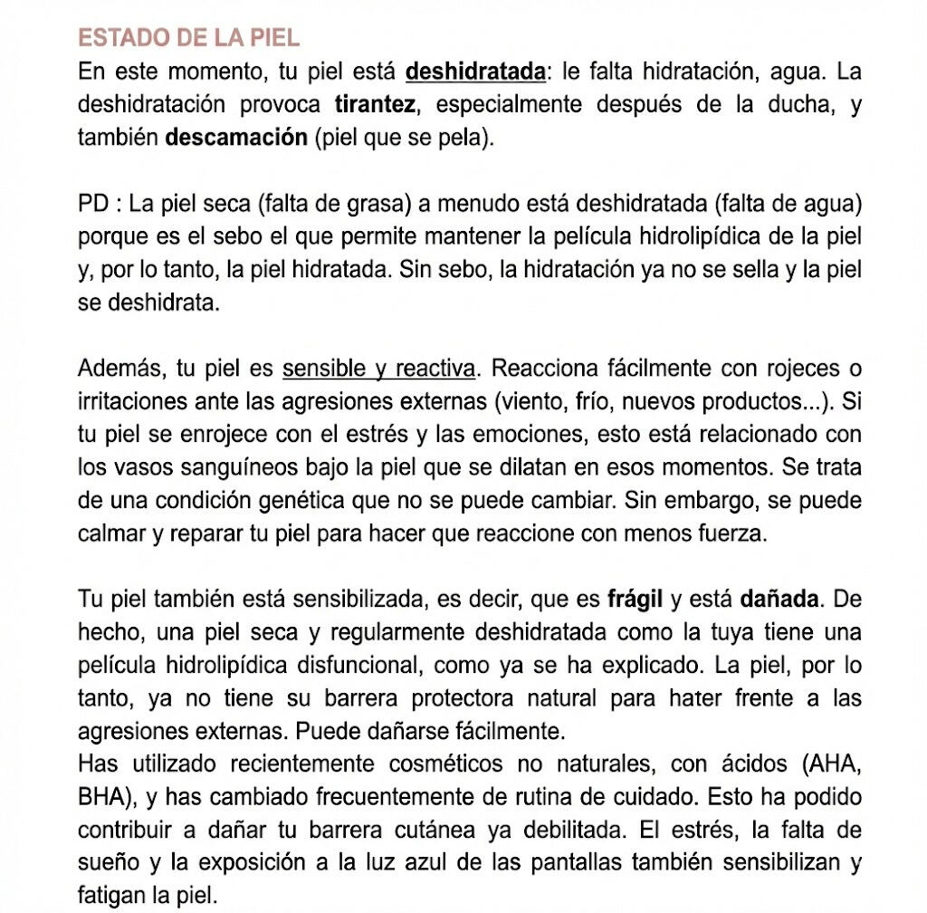 Te envío tu diagnóstico y rutina personalizada por correo electrónico en un plazo de 4 días laborales.